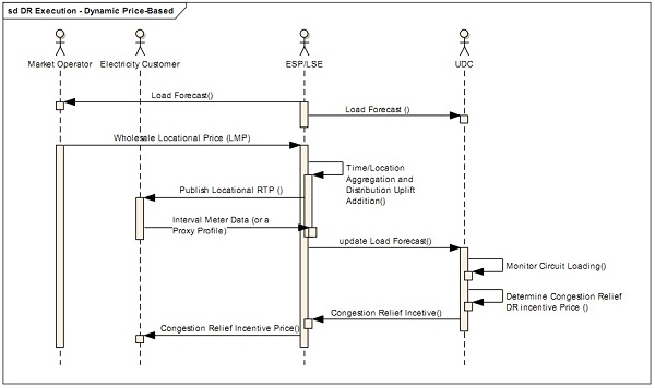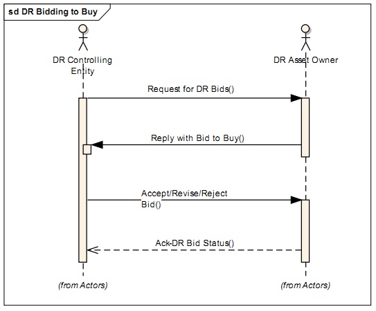 現時点では、DRのビジネスプロセスは標準化されていないので、以下に示すものは、リアルタイムDRの実行に関連する、主要アクター間の典型的なインタラクション例である。